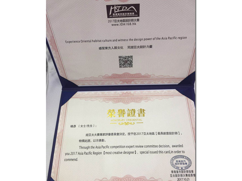 2017亞太設(shè)計師頒獎盛典于10月20日在佛山召開,本屆亞太設(shè)計師大賽吸引來自香港、澳門、臺灣、新加坡、泰國、馬來西亞、深圳、北京、上海、成都等多個國家及地區(qū)設(shè)計師投遞作品。自2017年2月春季榮譽作品展征集以來,至今已經(jīng)收到超1000份作品,受到行業(yè)的高度重視。品彥設(shè)計總監(jiān)楊彥先生憑借作品“中山三鄉(xiāng)魅力皇爵KTV會所”成功獲得 2017亞太地區(qū)【*具創(chuàng)意設(shè)計師】榮譽稱號