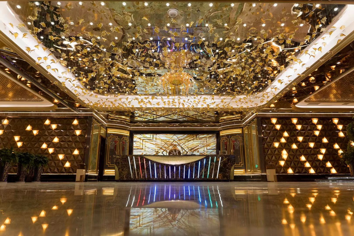 設(shè)計效果以布局上來看,整體以KTV在功能上實現(xiàn)娛樂、休閑、商務(wù)一體便捷式娛樂體驗;更貼近消費人群需求,色調(diào)上以金色營造靜謐氣氛,與幾何線條形成呼應(yīng),隨著空間內(nèi)線條的流動,從細(xì)節(jié)出彰顯空間的精致與細(xì)膩質(zhì)感,大廳右側(cè)通道,結(jié)合燈的光影效果,視覺上的沖擊整體體現(xiàn)出高端與時尚。